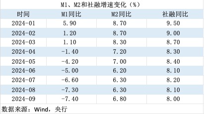 东方金诚首席宏观分析师王青表示,根据财政增量政策安排,今年四季度政府债券发行有望再度出现高峰期,新增社融也将恢复同比多增。这些都将带动M2和M1增速出现较为明显的反弹。