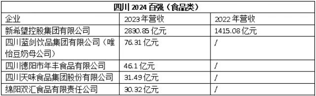 网红饮料唯怡豆奶母公司最新年销售额被披露。在四川省企业联合会公布的《四川100企业发展报告(2024)》中,唯怡母公司四川蓝剑饮品集团有限公司在列,2023年的营收达到了76.31亿元。