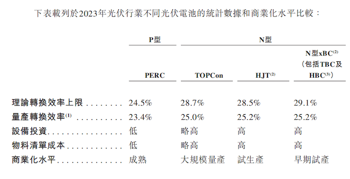 最近一代主流产品从P型PERC电池向N型电池过渡(“P型向N型过渡”)。钧达股份已代N型TOPCon电池和P型PERC电池等不同代主流光伏电池中保持竞争地位,公司N型TOPCon电池量产转换效率接近25.5%;P型PERC电池量产转换效率稳定在23.4%,与行业相一致。