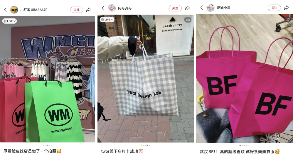 其次,占地要大,毕竟是“仓储式”女装店;装修要潮,最好是怎么拍都上镜的奶油风、ins风,毕竟这其实是它们赖以生存的资本:在社交平台上搜索这些店,数据最好的都是美女们精挑细选的打卡照,而不是衣服分享。