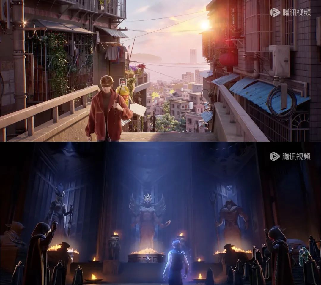 除了在场景、细节的还原上做到了充分尊重原著粉,《斩神之凡尘神域》的制作过程也诚意满满,虽然是一部大IP改编动画,制作团队却并未选择一条安全保守的因袭之路,而是在镜头语言、美学风格、配乐BGM等方面求新求变,最终呈现出了一部有着电影质感、视觉风格前卫、配乐过耳难忘的国漫佳作。