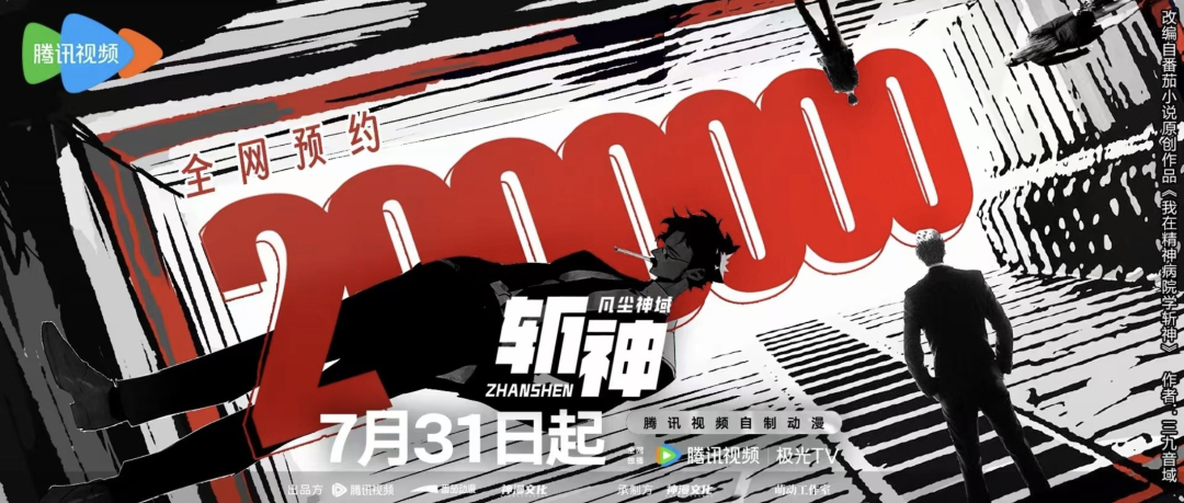 从开发过程来看,番茄小说将网文IP的成长与动画化过程同步,早在2022年小说连载早期,《我在精神病院学斩神》就率先发起动画项目开发,小说在连载中积累的粉丝热情也成功转化到动漫项目上,从官宣到制作过程都吸引了无数目光,还未上线全网预约量已超200万,为动画的爆发奠定了坚实基础。