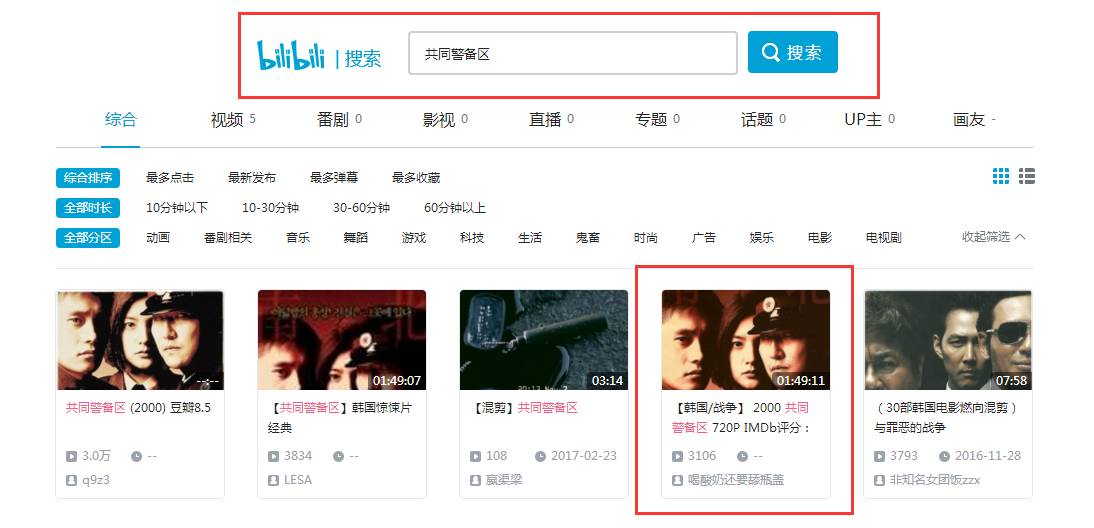一激动差点忘了说观看此片的方式了~~~想观看此片的朋友在哔哩哔哩弹幕网搜索“共同警备区”就有,详见下图红框内。