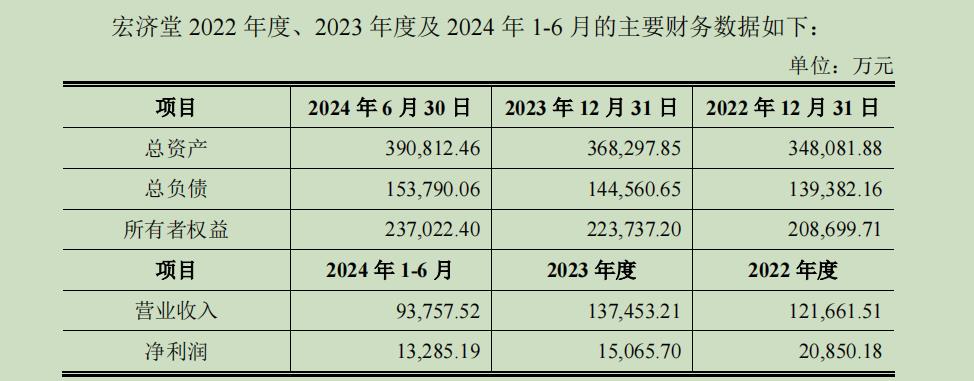 《关联交易预案》显示,宏济堂2022年、2023年、2024年1至6月分别实现营业收入12.17亿元、13.75亿元、9.38亿元,对应净利润分别为2.09亿元、1.51亿元、1.33亿元。