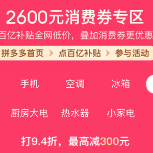 10月20日,今年的11.11大促正在火热进行中,拼多多继续加大补贴力度,百亿补贴第二轮“百亿消费券”活动正式开启,对补贴力度进行大升级,每人最高可领取2600元超大面额百亿消费券,首轮重点补贴手机、电脑、电视、冰箱、空调、洗衣机、小家电、厨房电器等产品,力促手机数码家电焕新升级,进一步释放平台的消费潜力。
