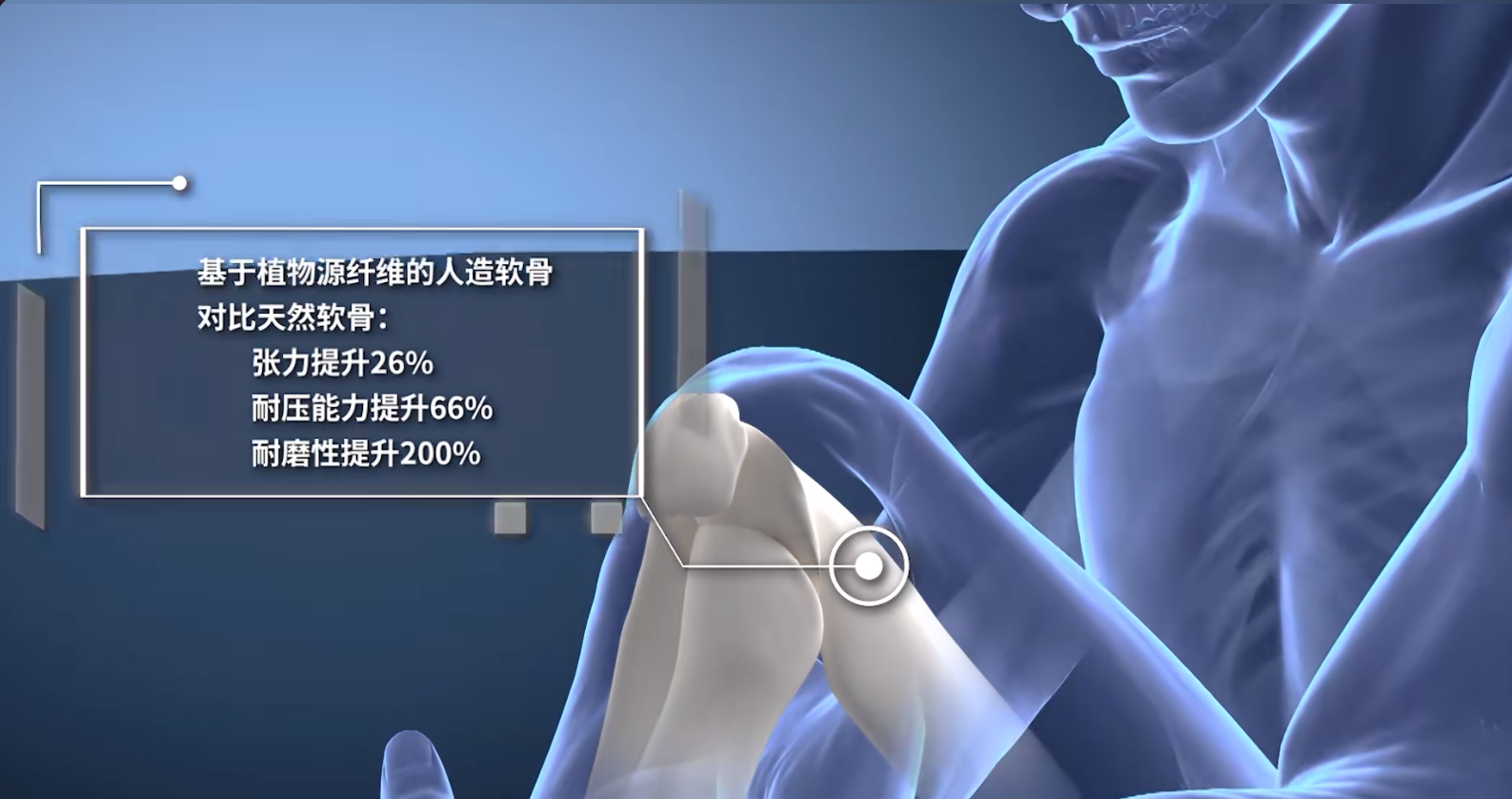 甚至以医疗场景为例,国际顶级期刊《先进功能材料》中,就有国内的南方科技大学与美国杜克大学的不同团队,先后找到了基于植物源纤维制品为核心的生物医用骨科植入材料突破。比如美国杜克大学科学家发表的文章显示,植物源纤维制品在人造软骨的作用,类似于天然软骨中的胶原纤维,可以在人体拉伸时赋予材料强度,而基于其研制出的产品在张力、耐压能力、耐磨性方面都远超天然软骨。