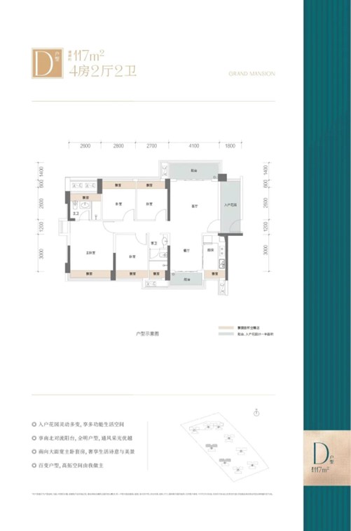 冠军青睐的建面约117㎡单位,实用空间可对标市面130平户型,不计面积的入户花园,可打通客厅,带来开间达5.9米的豪横社交大横厅,也可以改造成房间,创新实现五房的极致设计,满足大小家庭的不同置业需求。