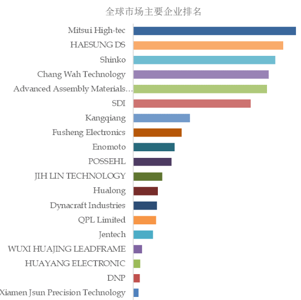 根据168Report的调研,2023年全球引线框架市场规模大约为40亿美元,未来6年复合增长率为4.1%。其中规模较大的公司依次为Mitsui High-tec、HAESUNG DS、Shinko、Chang Wah Technology、AAMI(即先材国际)、SDI等。该行业基本由日韩台系企业所主导,A股上市公司康强电子排名第七,而至正股份在注入先材国际后,将成为全球第五大引线框架企业。