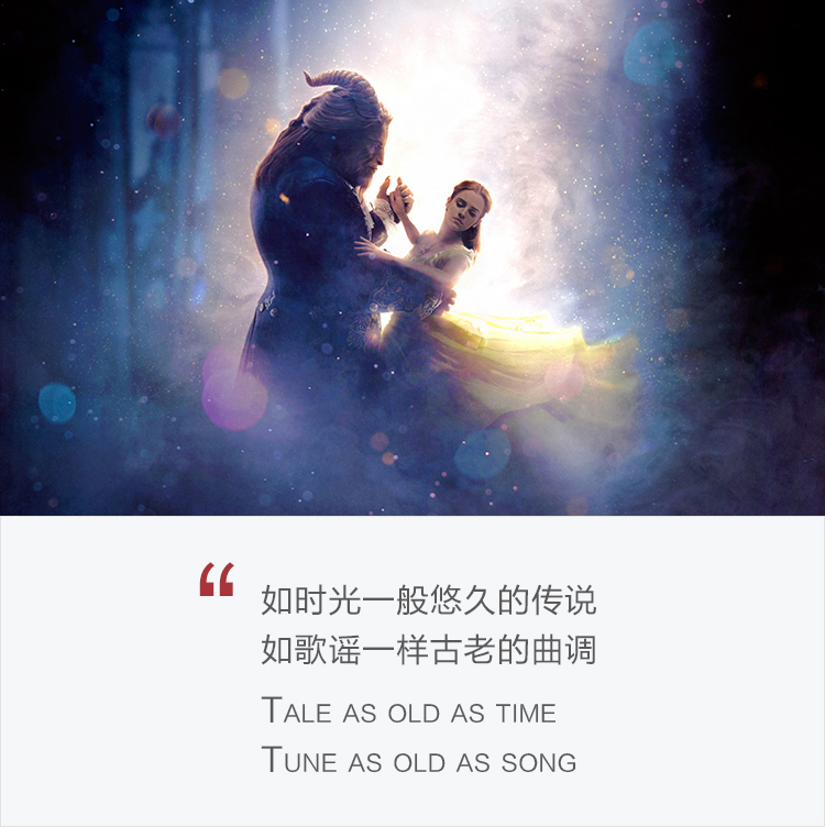 烛台卢米亚用绚丽魔法为贝儿准备了一顿丰盛的大餐,迪士尼也用它经久不衰的魔法为我们营造了一场空前绝后的歌舞盛宴,也许这万年不变的“迪士尼配方”让人体会不到太多新意,但就像艾玛·沃森所说:“只要听到《美女与野兽》中的音乐,我就认为一切都会好起来,这个世界总是有希望,一切都如此美好。”我们只要能在电影院重温这魔法奇迹,聆听那首熟悉的歌曲:“如时光一般悠久的传说,如歌谣一样古老的曲调”,我相信每个人都会微笑着离开电影院。