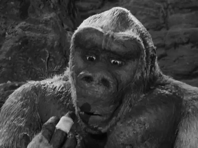 金刚复活后心想绝对不能再沾女性人类了,正在夜夜思春之时忽闻远处母金刚的呼唤,于是再次为爱疯狂冲破牢笼,大闹研究基地抱走了母金刚。接下来就进入了极为冗长且制作粗糙的“爱情戏”,请问观众为什么要忍受两个大猩猩互相调情那么久,而且离谱的是前后没多长时间,结尾还造出个小金刚?人类费劲巴拉斥重金复活了金刚,又拼了老命将其打死,GDP都是这么来的。唯独爽的就是金刚面对围追堵截,各种砸烂装甲车,砸烂坦克,砸烂将军,随口将人咬成两半,Wow...虽然没有进步,但好歹出了口恶气。