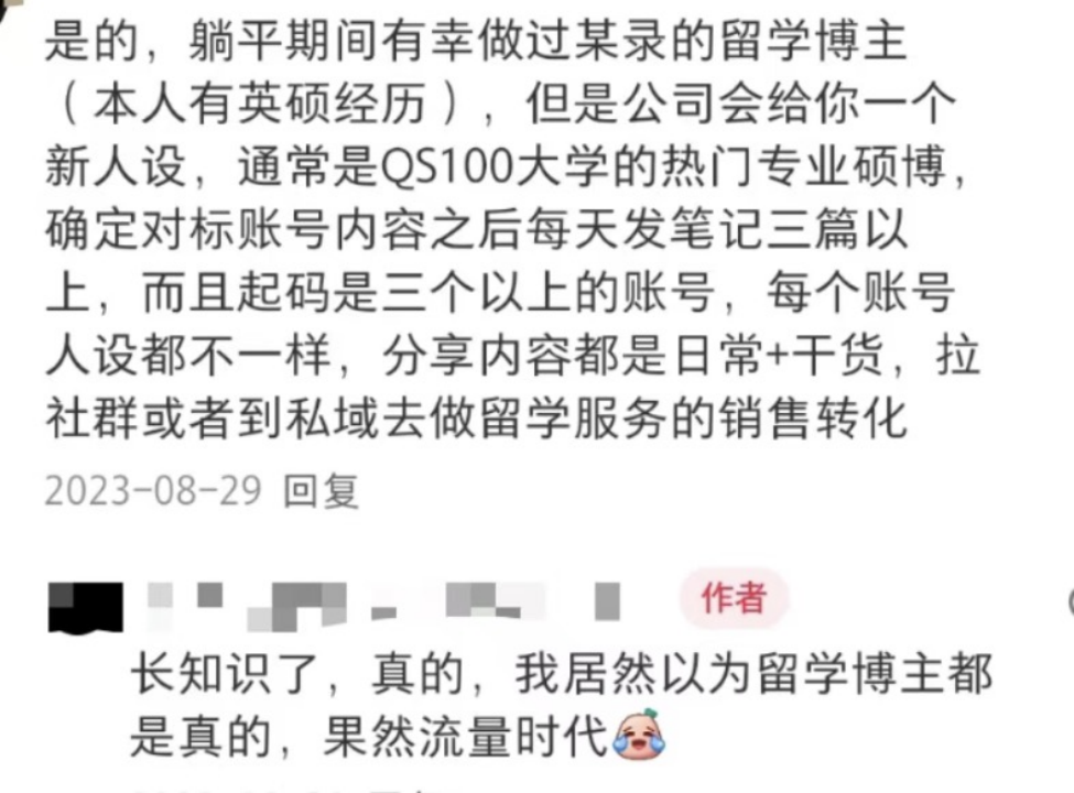 想要出国留学的学生,逐渐明白了学长学姐们的套路。连哈佛光环都不再晃眼——比如:哈佛教育学硕士,不过就是一个创收项目。而那些个人成长、励志经历分享里,大家已经读懂:韭菜,速来!殊不知,这些从工薪家庭走出的留子,也同样正在成为MCN眼里茁壮的韭菜。