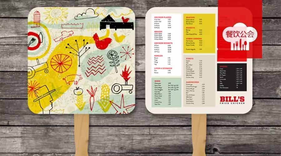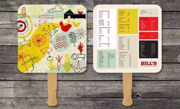 还有一种创意菜单则是极力迎合顾客的需求和体验。许多涉足户外婚宴的餐厅都会把菜单印在扇子上,既实用又美观,成本也不高,顾客还可以带走,无形中为品牌进行了二次曝光。