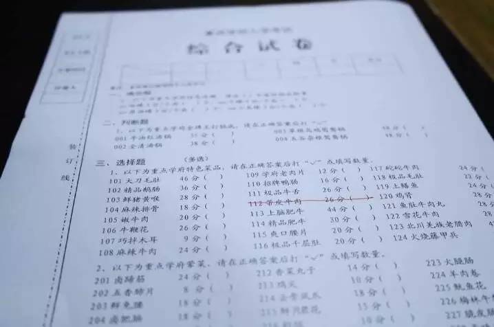 由黑板报型菜单联想出来的便是试卷型菜单。此类菜单多用于青春主题餐厅,把菜品融入考题中,顾客通过一道道选择题、填空题、连线题完成整个点餐程序。