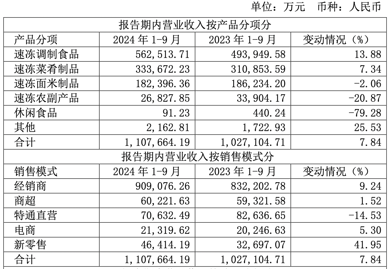 速冻调制食品、速冻菜肴制品两大类仍然是安井食品的两大支柱,也都获得了同比增长。
