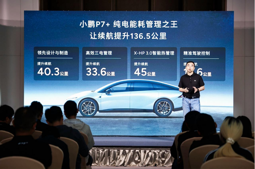 第四个准则则是关注驾驶行为,小鹏把能耗管理覆盖到人驾和智驾的精准控制。高效动力标定和精准动能回收,把动能损耗降低了20%;去掉激光雷达,AI鹰眼视觉智驾方案的总系统功耗领先行业15%。一系列优化后,小鹏P7+不管是人驾或者智驾,续航能力最高可以增加17.6km。