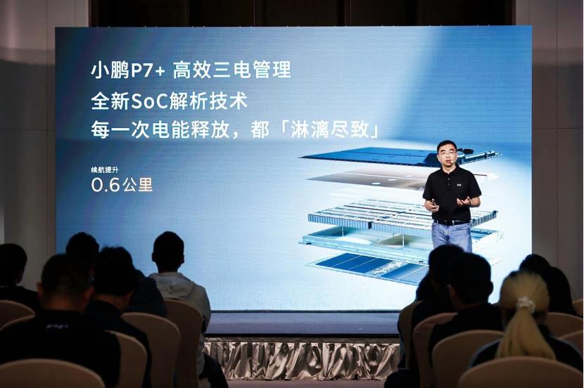 小鹏P7+全新碳化硅功率模块,减少能量传递的损耗,把传输效率提升至最高99.5%,增加了另外10km续航。在电池端,小鹏和合作伙伴利用全新的电池SoC解析技术把续航提升了0.6km——往往,在成本控制压力下,这种微小的提升因为收益太低,用户感知非常弱而被不少车企忽略。