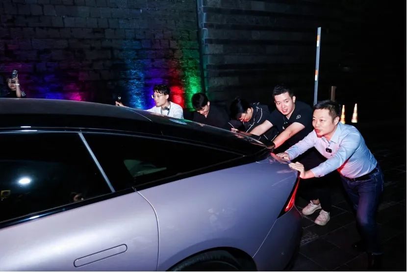 何小鹏再一次体验推车。他出差回到广州后,恰好测试即将结束,他直接从机场赶到测试现场帮测试媒体推车。两次推车,只间隔了两个多月时间,但小鹏的三电系统又跨过了一个台阶。