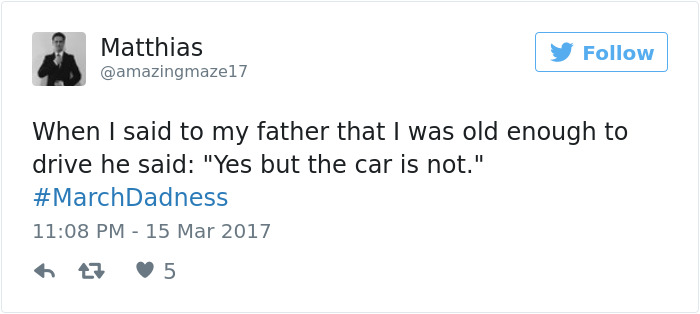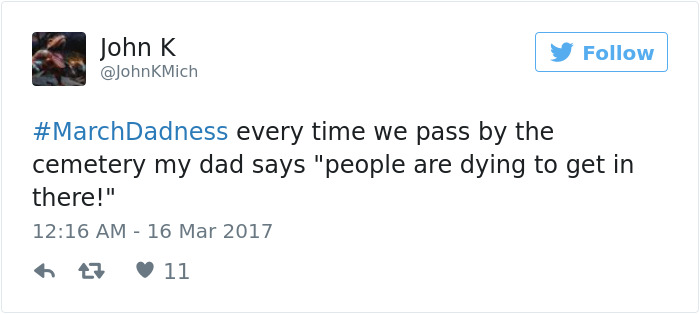 主持人吉米·法伦(Jimmy Fallon)的社交媒体号召力真不是盖的。最近他又在推特上发起了一个话题,让粉丝分享“你的老爸或者其他人的爸爸说过的最棒/最差的笑话”。现在国外推特上已经炸开了锅,一时间得到了不少有意思的回答。我们从中挑选出了最有趣的20条状态,看看这里面有没有你蠢萌爹地的身影。