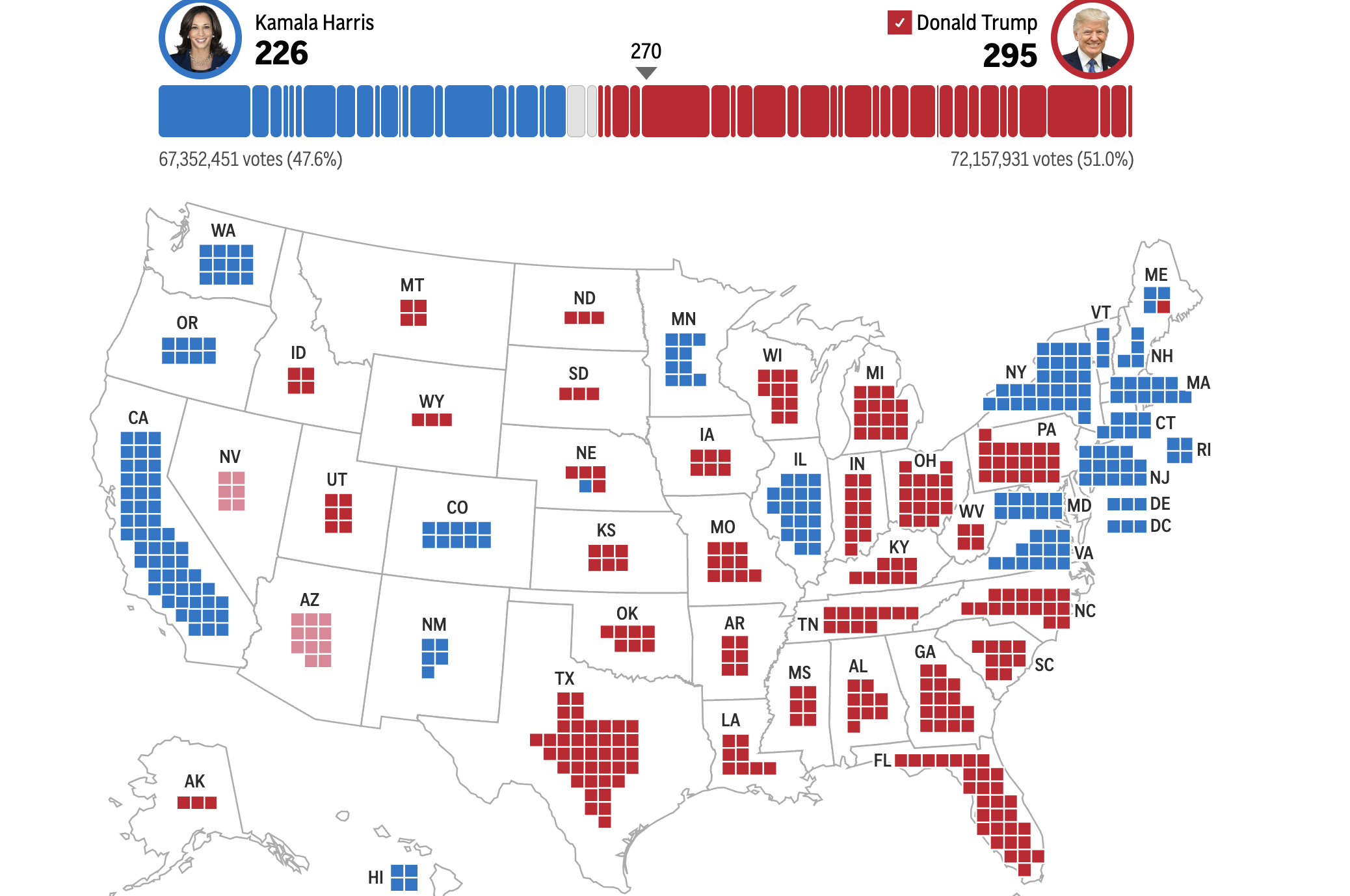 哈里斯败选,原因有其自身局限性,更大的背景则是社会鸿沟加深这一事实,在某种程度上也是现阶段“两个美国”对抗下的结局。