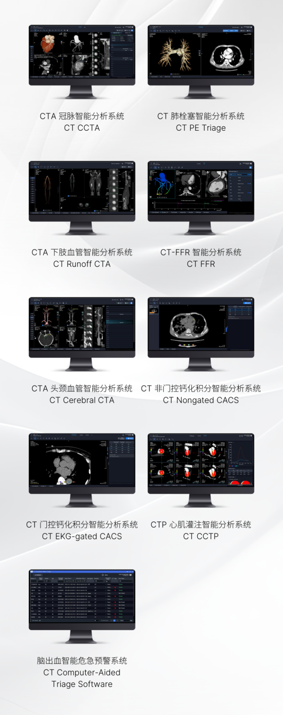 2024年9月,联影智能共计九款AI应用获批CE认证。分别是CTA 冠脉智能分析系统、CTA 下肢血管智能分析系统、CT 肺栓塞智能分析系统、CT-FFR 智能分析系统、CTA 头颈血管智能分析系统、CT非门控钙化积分智能分析系统、CT 门控钙化积分智能分析系统、CTP 心肌灌注智能分析系统、脑出血智能危急预警系统。这些AI应用能够辅助医生开展心、脑、下肢血管疾病的精准诊断,助力危急预警。