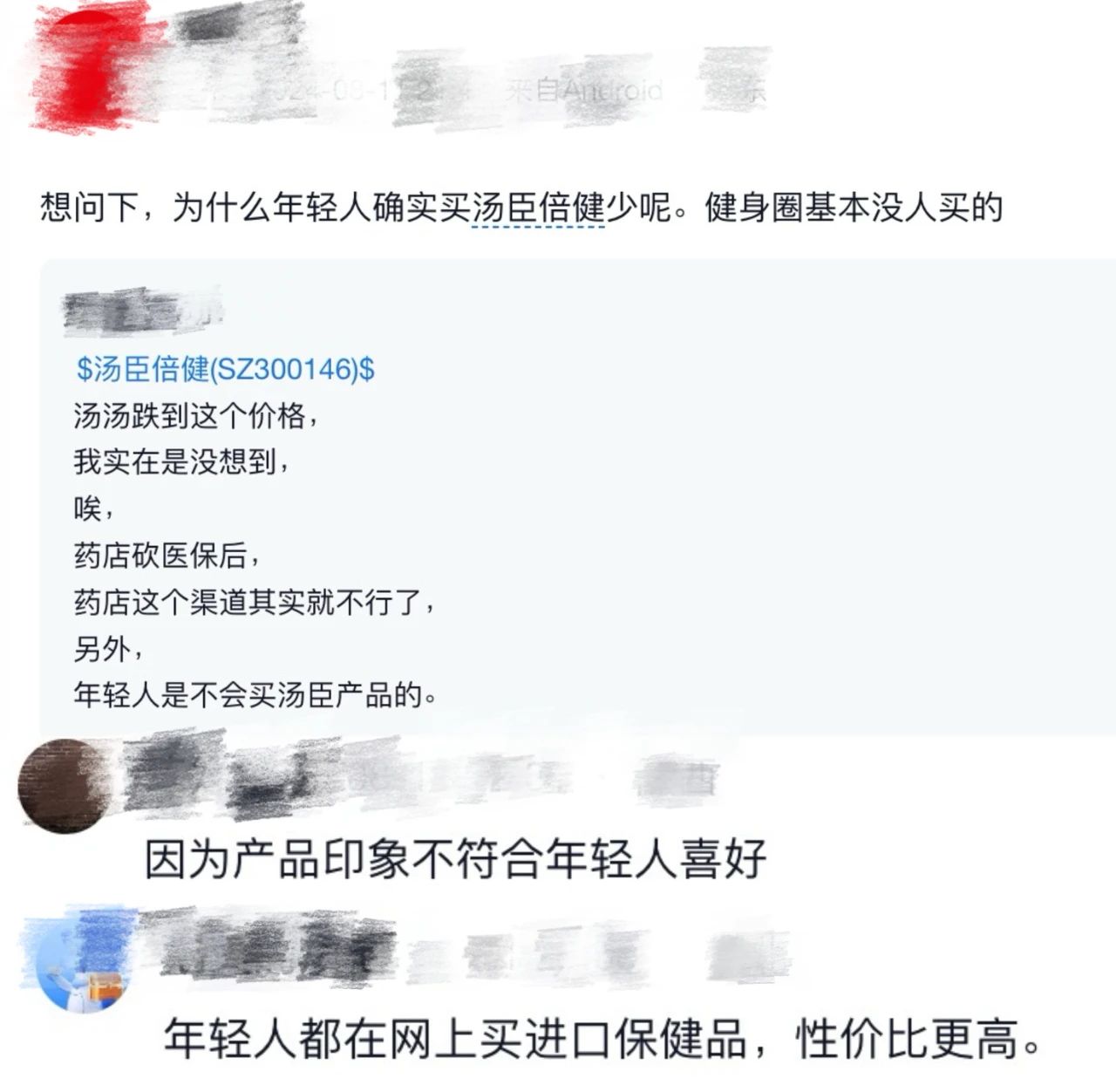 “年轻人不买汤臣倍健”。