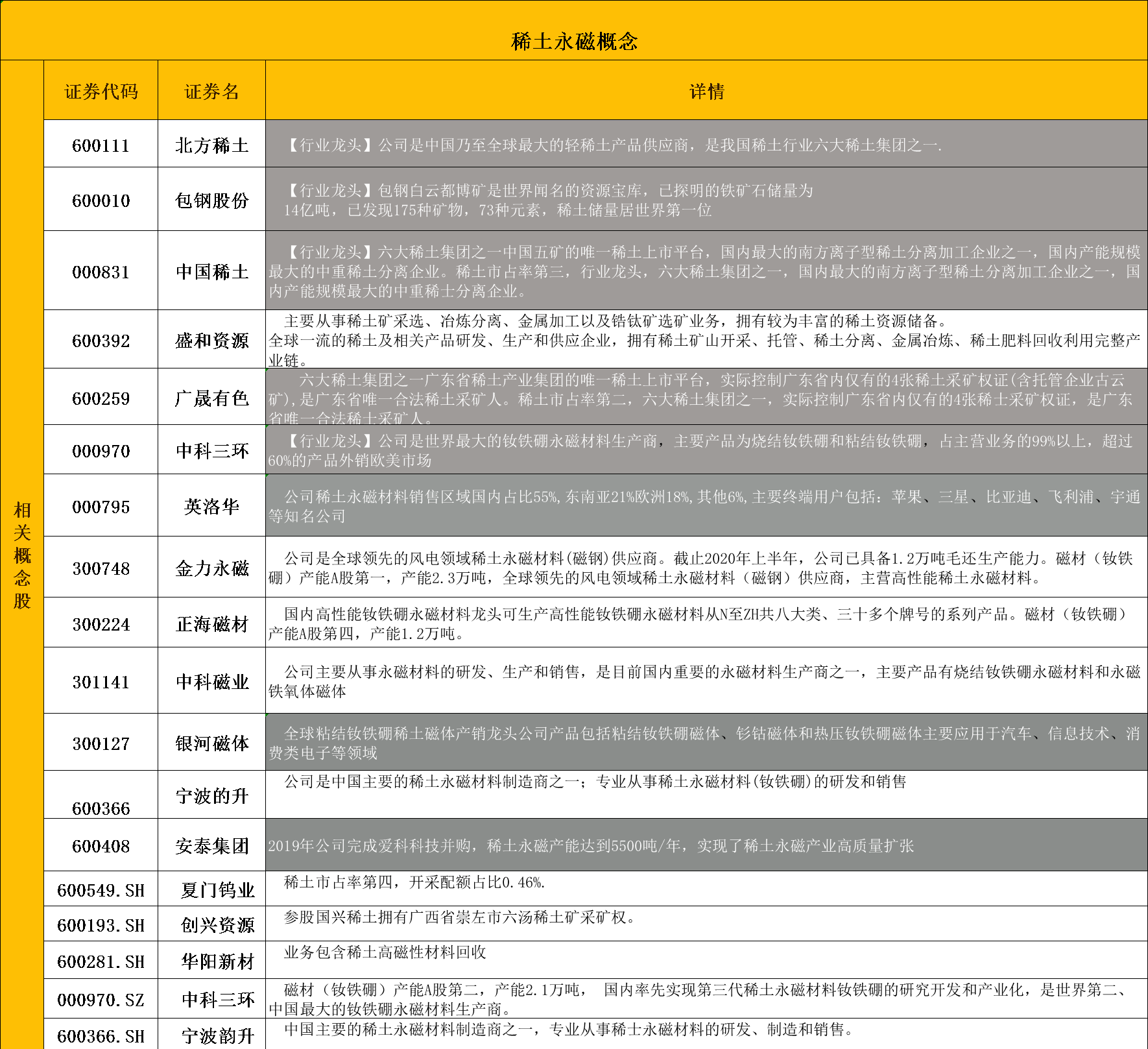 在此背景下,稀土永磁概念股受到资金的爆炒。稀土永磁概念股究竟有哪些?