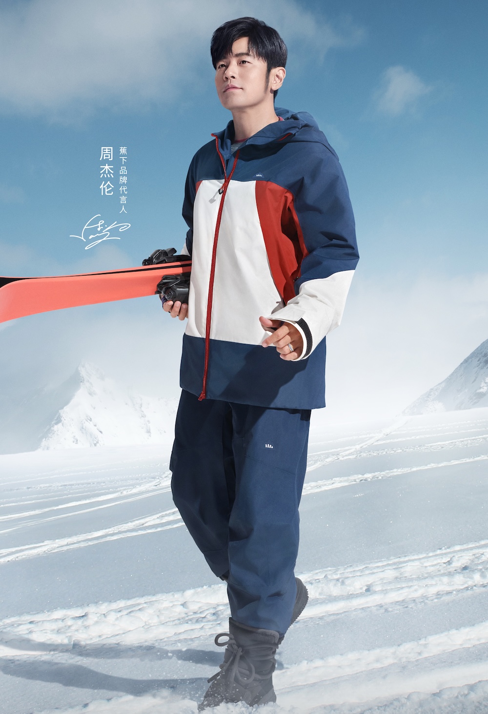 近日蕉下在微博、小红书等社交媒体平台密集发布由品牌代言人周杰伦和杨幂拍摄的滑雪服广告,用上诸如“入门”、“第一件滑雪服”、“专业级”、“硬壳”和“全面防护”等词汇进行描述。这不是其第一次推广滑雪产品,但此前更强调轻量和保暖。