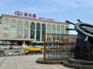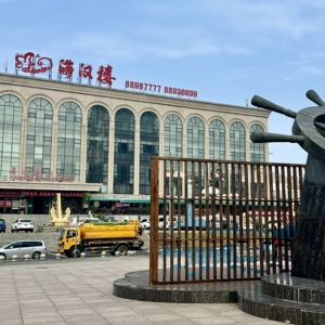 松花江南畔的戊通航运码头边,一栋气派的大楼坐落在江堤上。附近市民介绍,在1980年代,这栋楼曾是黑龙江航运管理局办公楼,位于大楼门前的一尊金色船锚雕塑保存至今,见证着这段历史。大楼后来改为当地老年干部活动中心,2017年,酒楼“满汉楼”在此开设江畔分店。