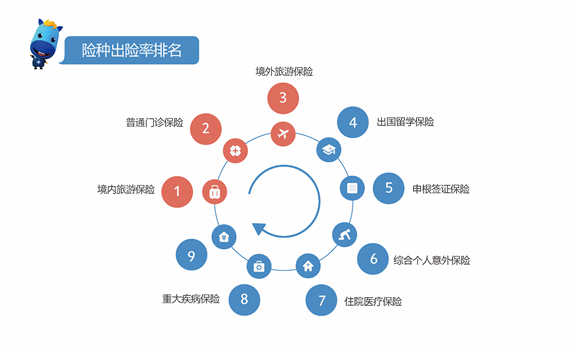 从2016年慧择网接到的理赔报案分析,在细分险种上,境内旅游保险、普通门诊保险、境外旅游保险、出国留学保险以及申根签证保险等排名出险率前五,而自住型家财险的出险率是最低的。从年龄层观察,25~29岁区间的被保人出险率最高,其次是18~24岁。