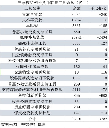 人民银行日前发布的结构性货币政策工具情况表显示,今年三季度末结构性货币政策工具一共18项,数量和上季度末持平;余额合计6.66万亿元,环比下降3727亿元,这是继二季度下降5083亿元后的再度下降。