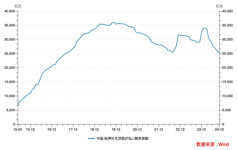 2022年,中央创设7400亿政策性、开发性金融工具,用于补充包括新型基础设施在内的重大项目资本金,资金来源主要是PSL。2022年9月-11月PSL余额重回增长轨道,此后又有所下降。