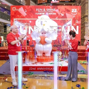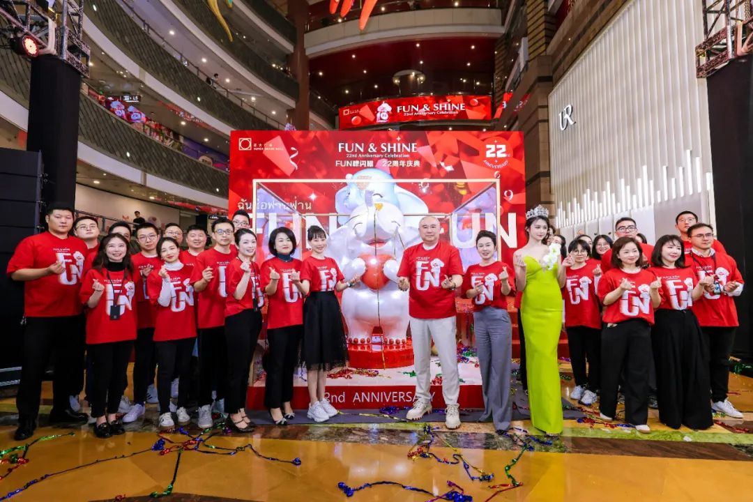 11月2日下午,“FUN肆闪耀”正大广场22周年庆典仪式在广场3楼黄金大道盛大举行。在22周年庆之际,正大广场隆重发布正大广场自有吉祥物IP小象FUNFUN。正大集团资深副董事长罗家顺先生、正大集团正大广场首席执行官王瑶女士、正大集团商业地产创新事业首席执行官周佳璇女士以及正大广场助理副总裁沈嫣琼女士共同为FUNFUN揭幕,现场气氛十分热烈。