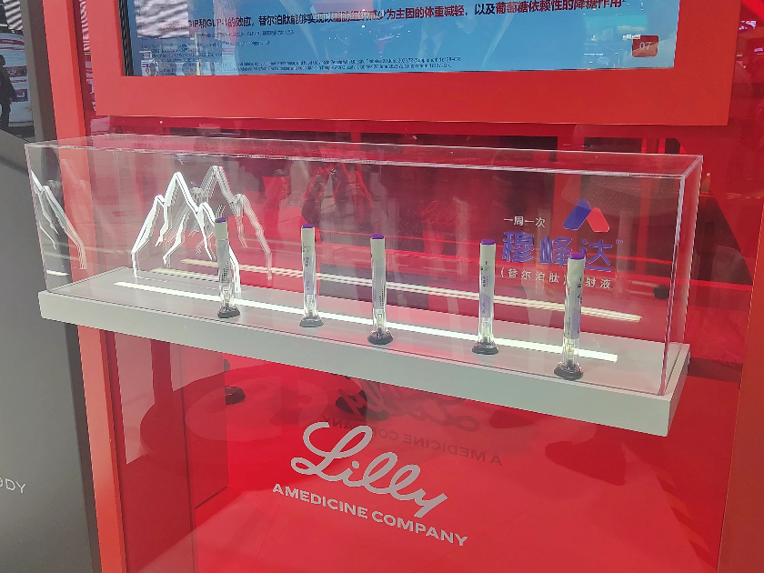 第七届进博会上,前述两明星药均在医药展区亮相。具体而言,礼来重点展示了替尔泊肽注射液(穆峰达),其是全球首个且目前唯一获批的GLP-1R/GIPR双靶点受体激动剂。