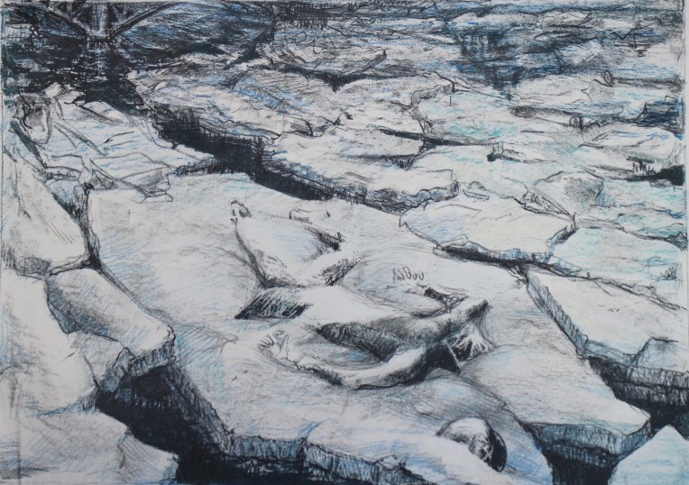 ↓ 《跨越拉多加湖》 :对被包围的守城者而言,冰冻的湖面依旧是重要的补给线。