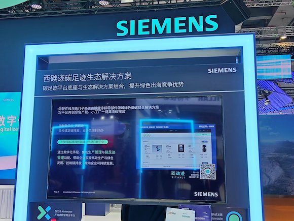 进博会西门子展台的工作人员称,参展三天来,已有不少来自地方政府的参观者对该公司的西碳迹平台表现出浓厚兴趣,并留下联系方式,有意向所在地的制造型企业推广。