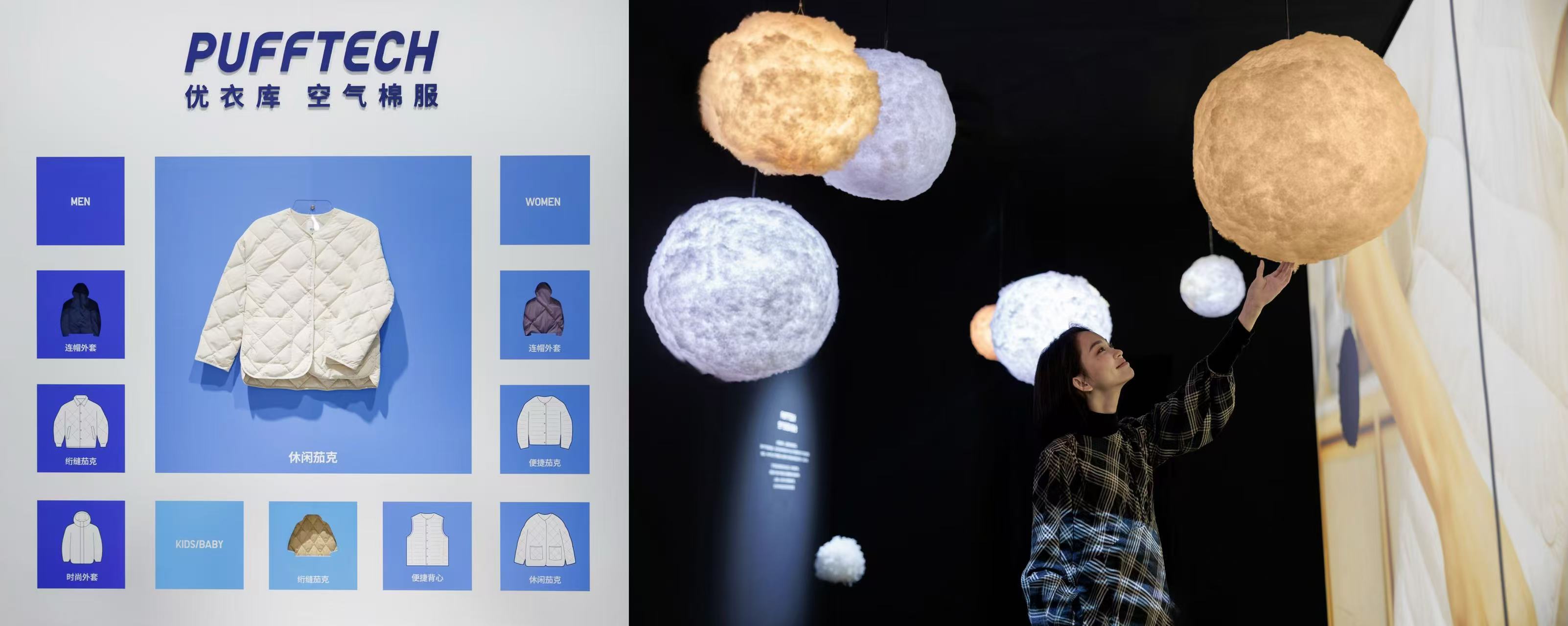 优衣库PUFFTECH空气棉服是本次展览的一大亮点。这款创新产品,以3D极细中空纤维打造颗粒状填充物,实现了轻盈与保暖的完美结合。其独特的“空气锁温科技”,更是打破了传统棉服的笨重形象,让人们在秋冬季节也能尽享轻盈与时尚。在优衣库展台的空气锁温动能舱,观众不仅可以欣赏到光影艺术的魅力,更能亲身体验到这款产品的轻盈温暖与舒适。