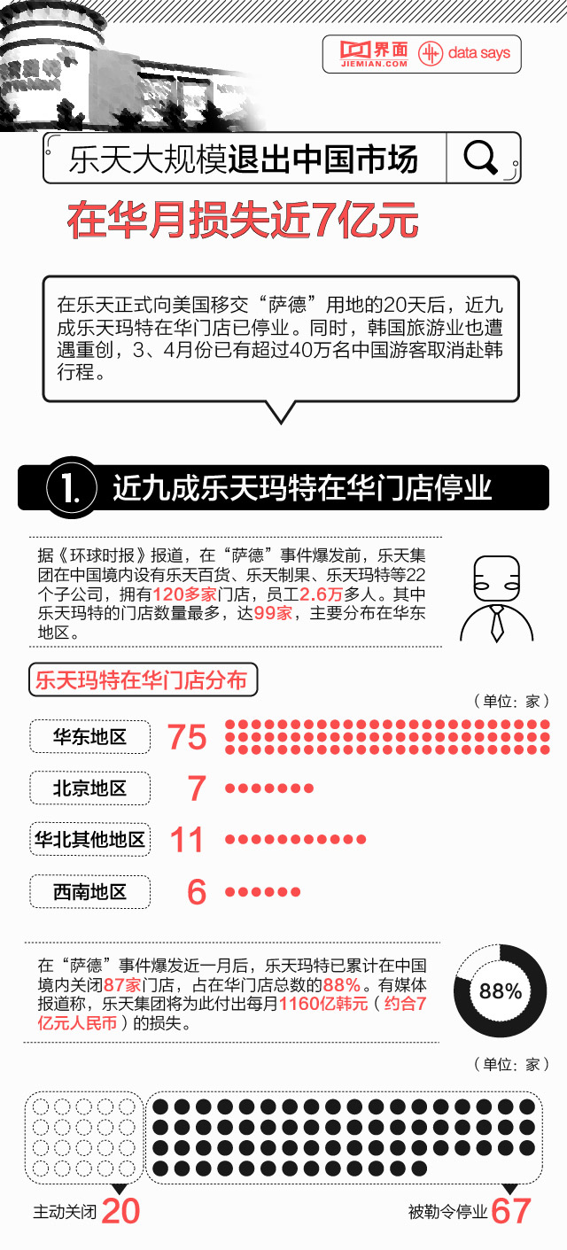 【图解】乐天大规模退出中国市场 在华月损失近7亿元