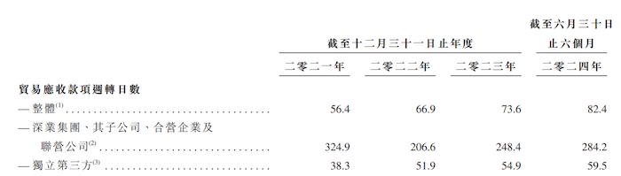 招股书显示,2021至2023年及2024年上半年,深业物业来自深业集团及其子公司、合营企业或联营公司等关联方的贸易应收款项周转天数分别为324.9天、206.6天、248.4天和284.2天,明显偏长,远超过来自独立第三方对应的贸易应收款项周转天数38.3天、51.9天、54.9天和59.5天,这在一定程度上影响了其资金流转效率。
