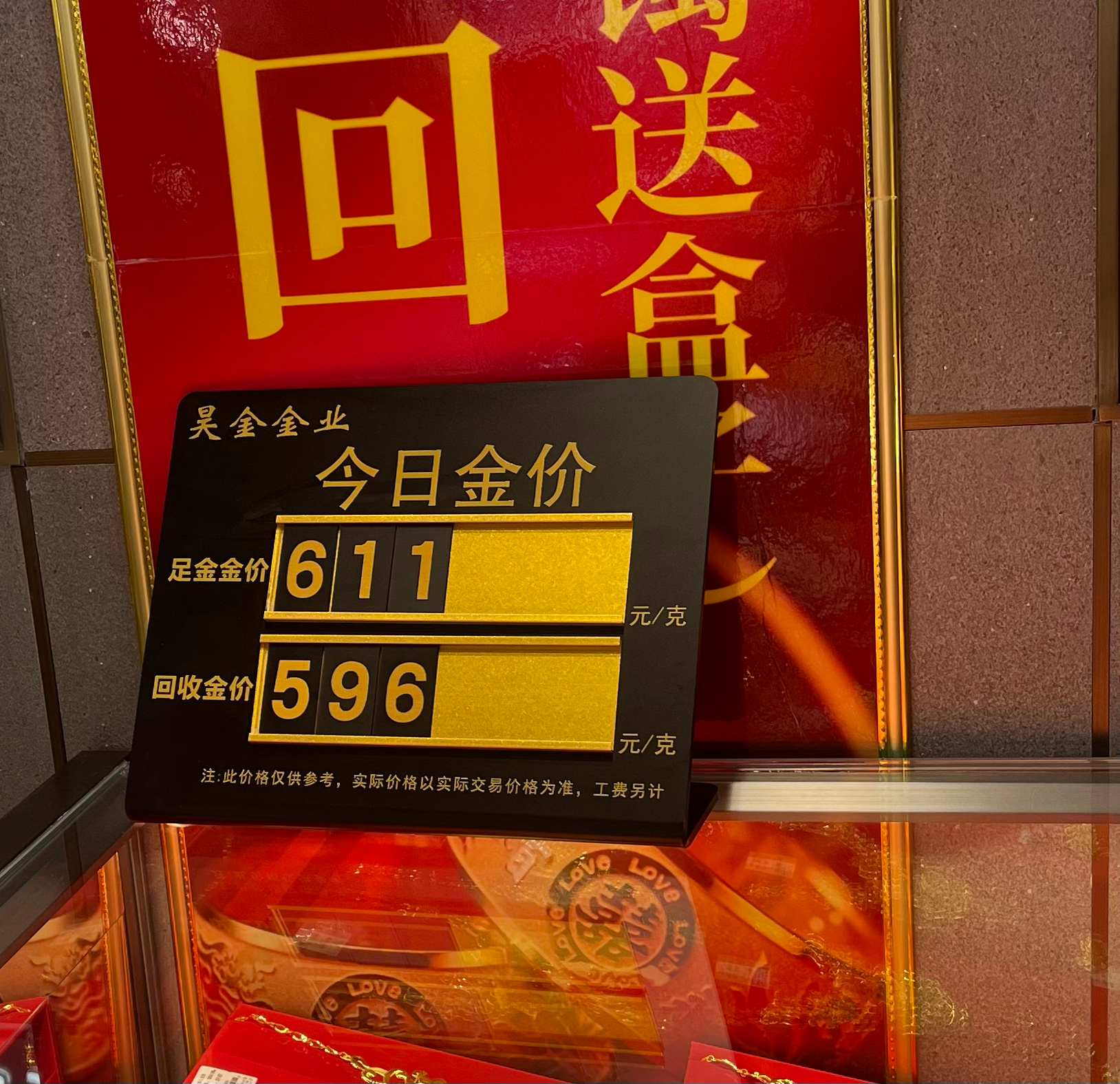 11月12日,界面新闻记者走访了国内最大黄金珠宝交易集散地——水贝,当日水贝金价报611元/克,较11月6日的635元/克已下降24元/克。回收价格也已从6日的620元/克下降至596元/克。