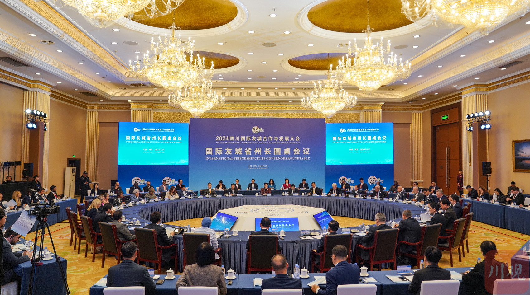 11月12日,“2024四川国际友城合作与发展大会”国际友城省州长圆桌会议举行,来自40余个国际友城代表团参会,其中27位友城代表围绕“开放合作·互利共赢”交流分享,在与会各方的共同倡议下,《2024四川国际友城合作与发展大会倡议》正式发布。