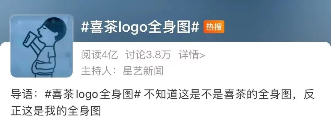 比如喜茶的标志性Logo就是典型案例。此前有网友在社交平台上传了加工版Logo插画,给喝茶小人加上了有小肚子的下半身,喜茶亲自下场互动,后续引发大量网友八仙过海式地为这个Logo重新设计造型与场景。