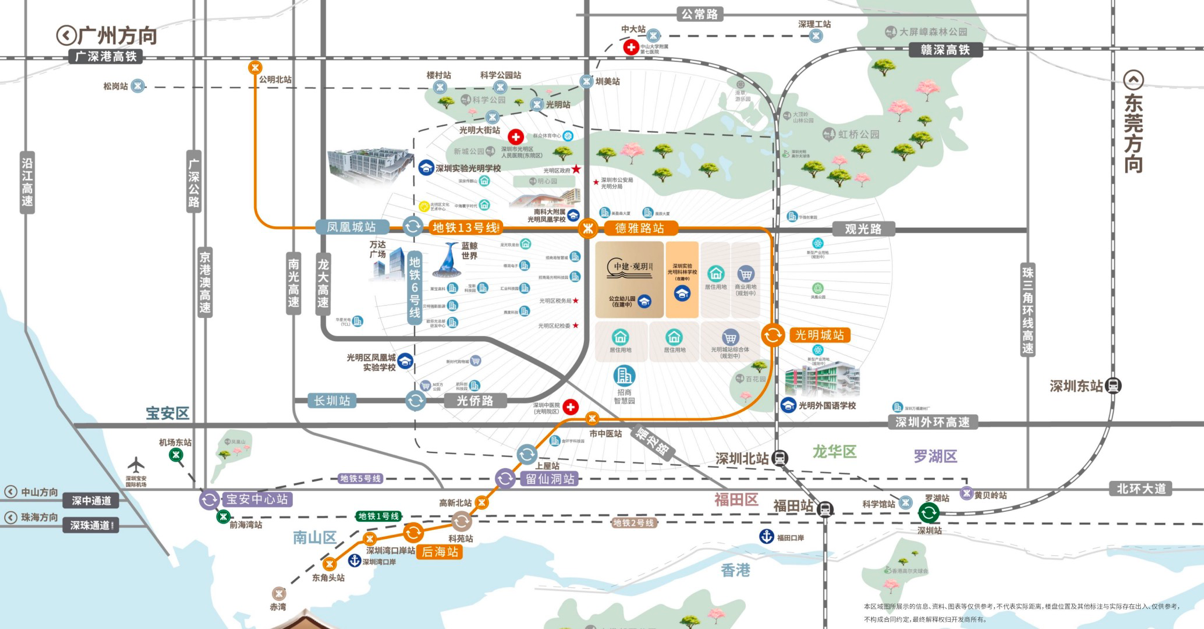 中建观玥项目所在的凤凰城板块,位于光明科学城的核心区域,是光明“核心中的核心”。