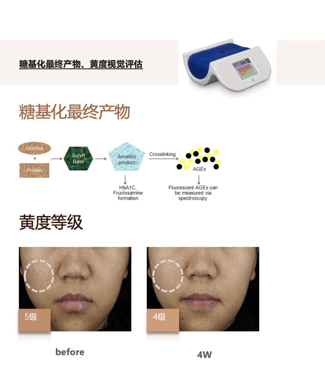抗糖化测试:为评估抗糖化功效,公司针对皮肤泛黄问题,开发了抗糖化评价方法,模拟高糖环境下皮肤糖基化的生成。通过四周使用实验,公司发现特定产品可明显改善皮肤泛黄现象。