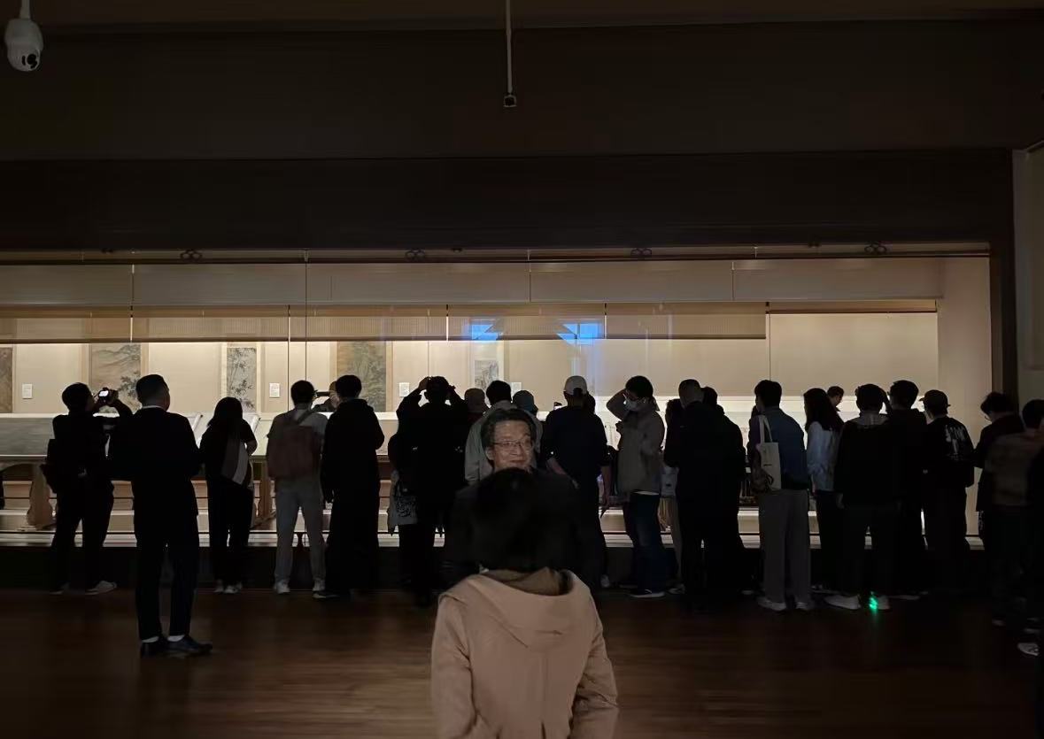 “早就听说这些作品是书法与绘画史上的瑰宝,今天能亲眼见到,真是感觉非常荣幸。”一位手持导览册的中年男士兴奋地说,他的透过人群感受到那些古老纸张上的墨香。