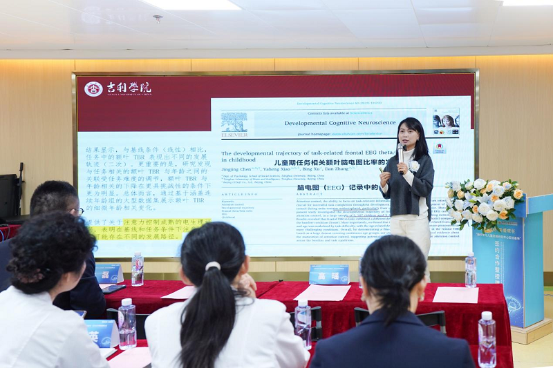 授牌仪式后,徐磊院长对本次合作项目进行了简要介绍,本次合作项目由吉利学院李妍伶博士与清华大学张丹教授团队联合进行研究。他提到,该项目旨在通过脑电指标TBR深化注意缺陷多动障碍儿童不同亚型和年龄的理解,探讨注意缺陷多动障碍儿童静息态脑电和任务条件下可能存在的TBR发展规律,从而制定个性化的教育干预策略,以提升注意缺陷多动障碍的诊断准确性和干预效果。通过此次合作,成都高新西南儿童康复医院将和吉利学院共同推进这一项目的深入研究和实践应用,为多动症儿童的诊疗提供有力支撑。