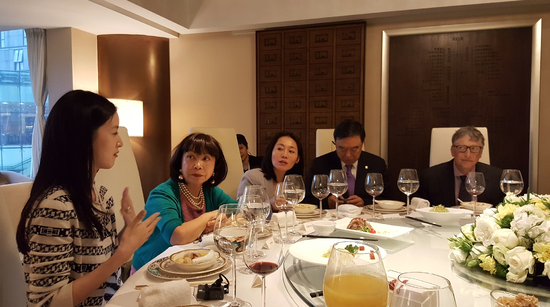 章泽天和比尔盖茨用餐 英文介绍公益项目