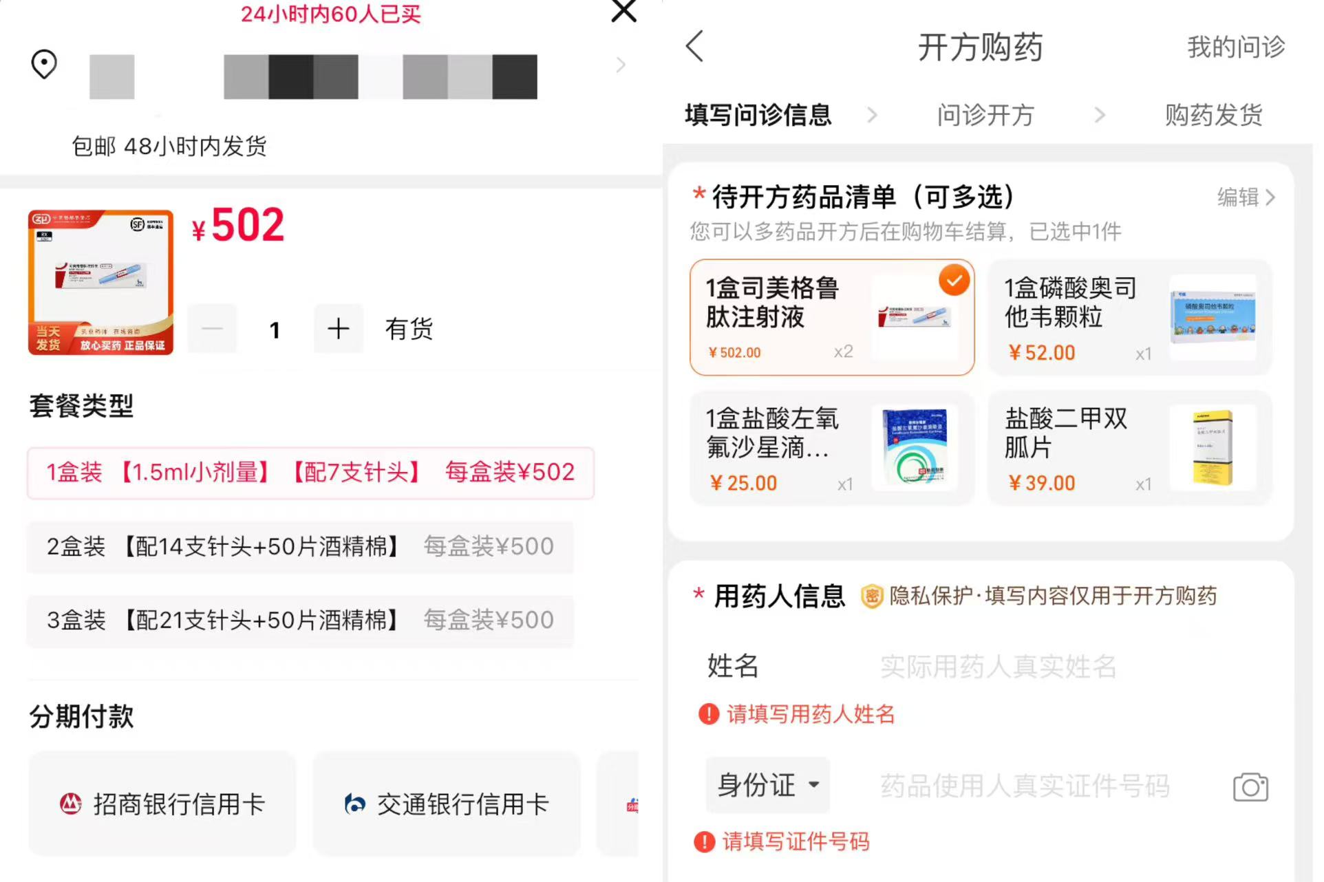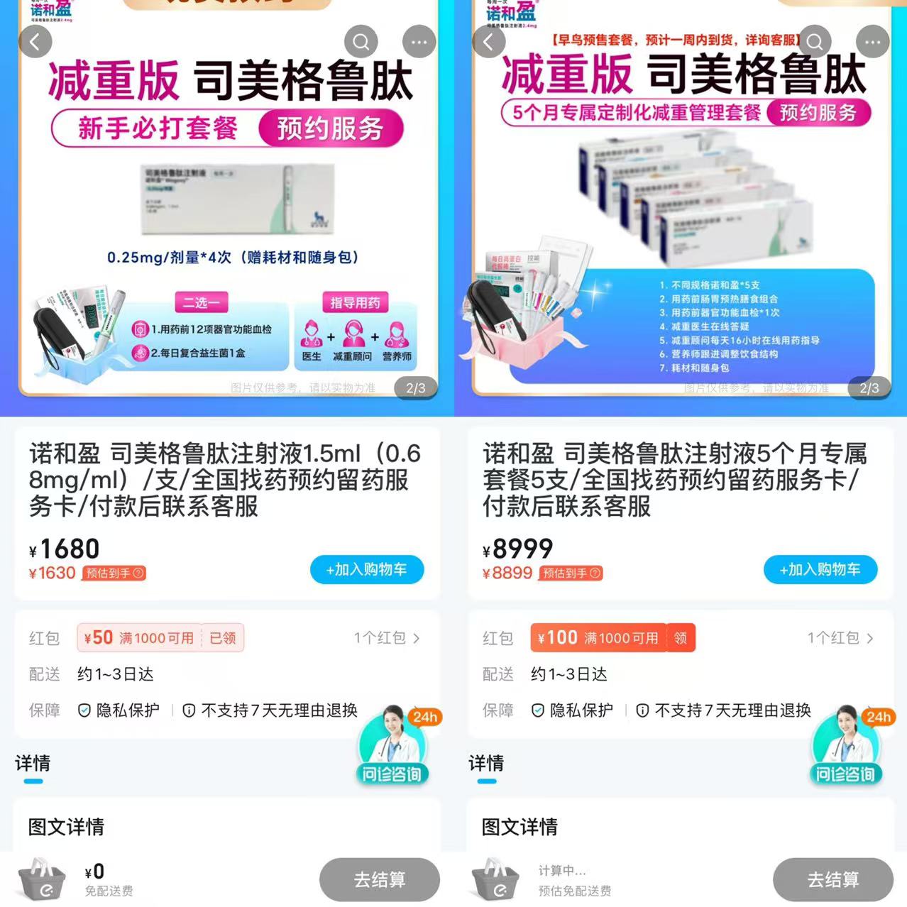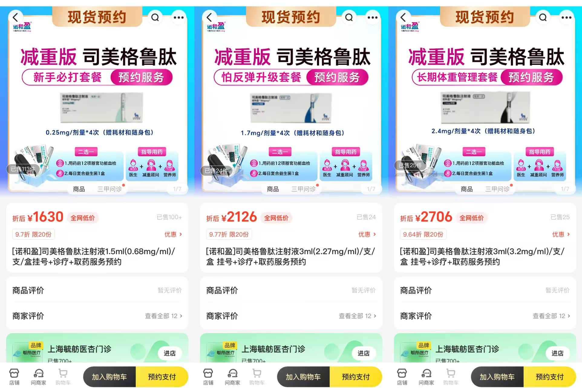 由于获批时间更早,诺和泰®在电商渠道上的购获也更便利,通过开具在线处方即可支付。在电商平台上,诺和泰®的价格大约是几百元。