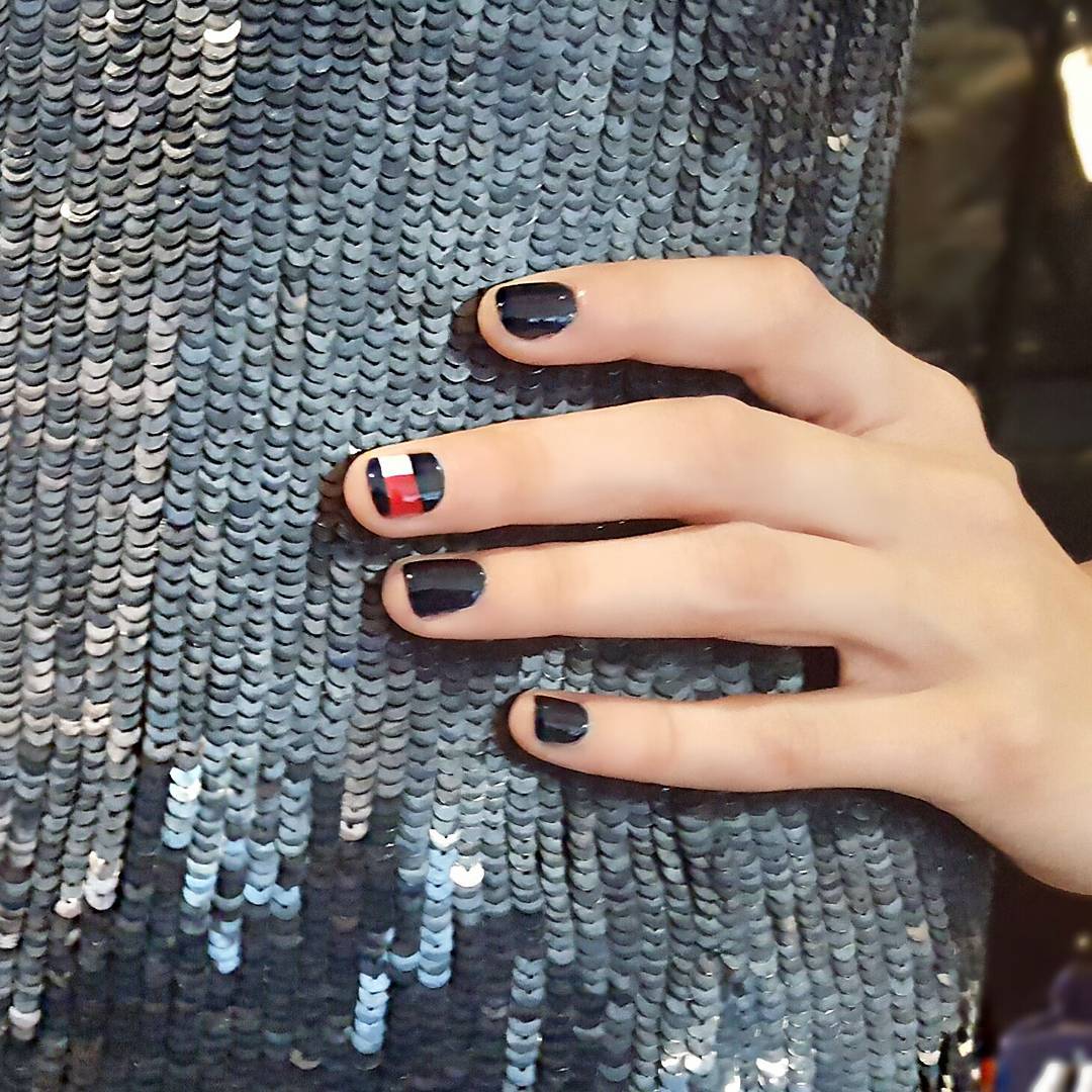 早在2017春夏纽约时装周上,Gigi Hadid于《早安美国》节目上谈及Tommy X Gigi系列时,就秀出了自己指尖的Tommy Hilfiger Logo图案美甲。