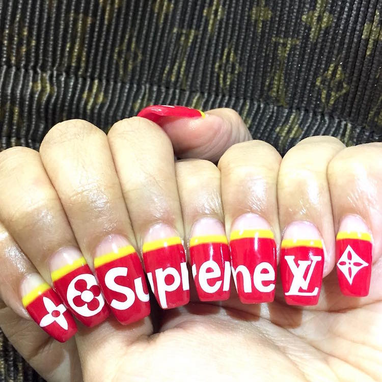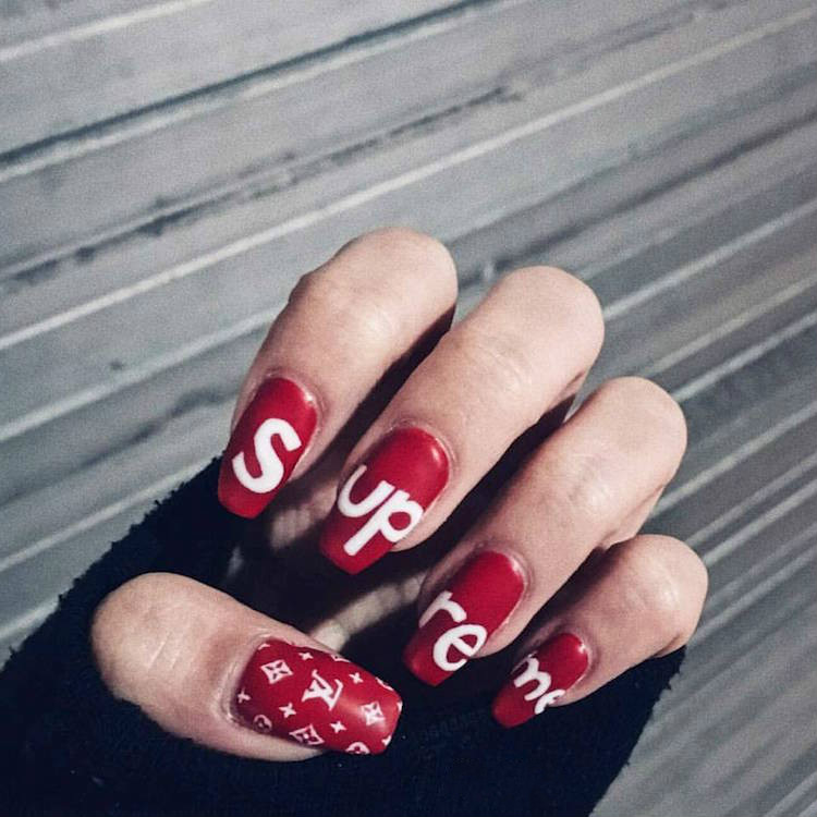 Logo Nail的街头感与当下流行的Athleisure其实非常搭,并且能于细节之处做足每一个造型才是潮流之人的关键取胜点。下次进美甲店,不如参考以下的图片尝试一下Logo Nail。