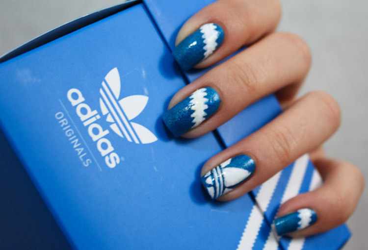 一些运动品牌的Logo Nail街头感更强,像是最近鞋子卖断货的PUMA,蓝白相间的Adidas,还有可以清新风格的Nike。